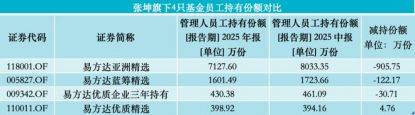 与张坤的大胆调仓形成鲜明对比的是,易方达内部从业人员在2025年下半年对上述三只产品均进行了减持。